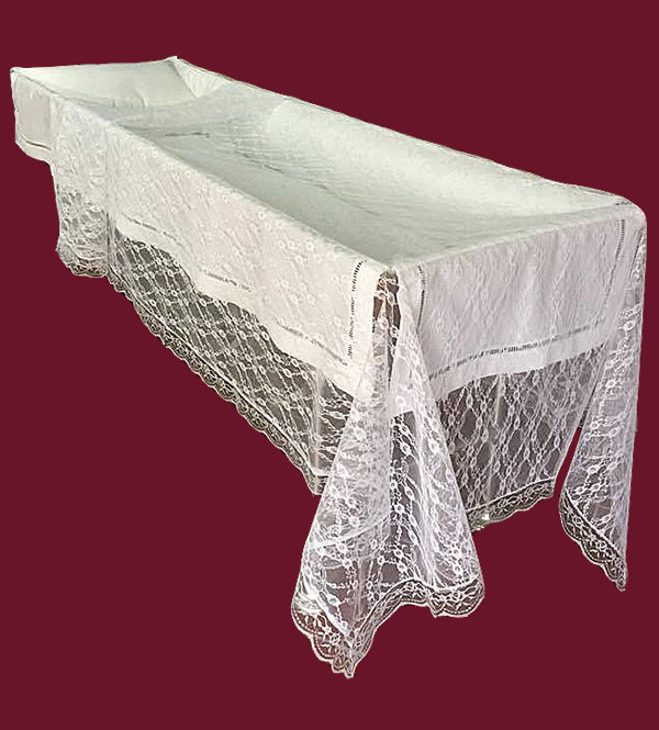 Véu Tule Rendado, cor branca ou pérola, acabamento (fita de cetim, corte e coze, renda).