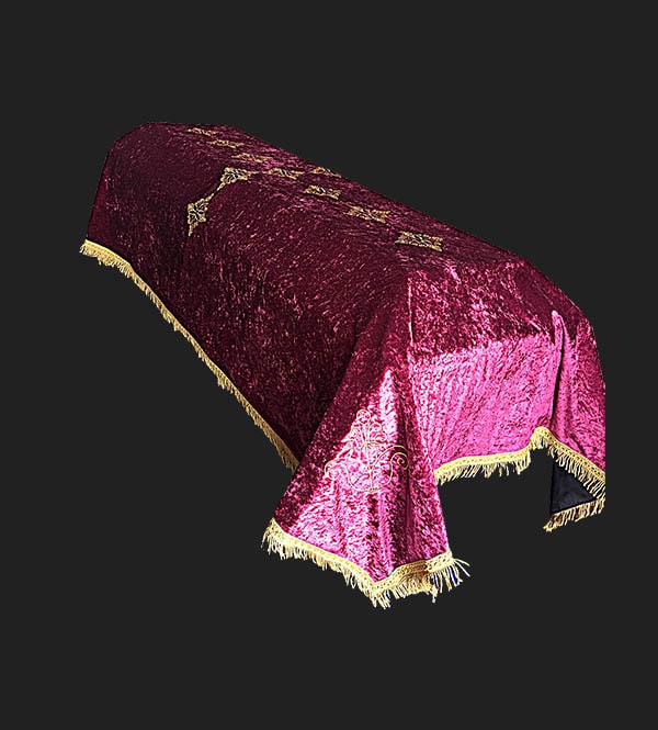 Pano Funerário de Veludine, decorado com bordados, com aplicação de pedras ou tachas. Presente artigo poderá ser vendido em diferentes cores à escolha do cliente.