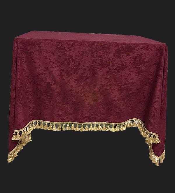 Toalha para mesa de Condolências, bordado com logótipo, decorada com franja dourada ou prateada, personalizada ao gosto do cliente.